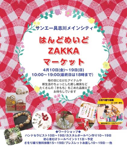 はんどめいどZAKKAマーケットに出店させていただきます<(_ _)>